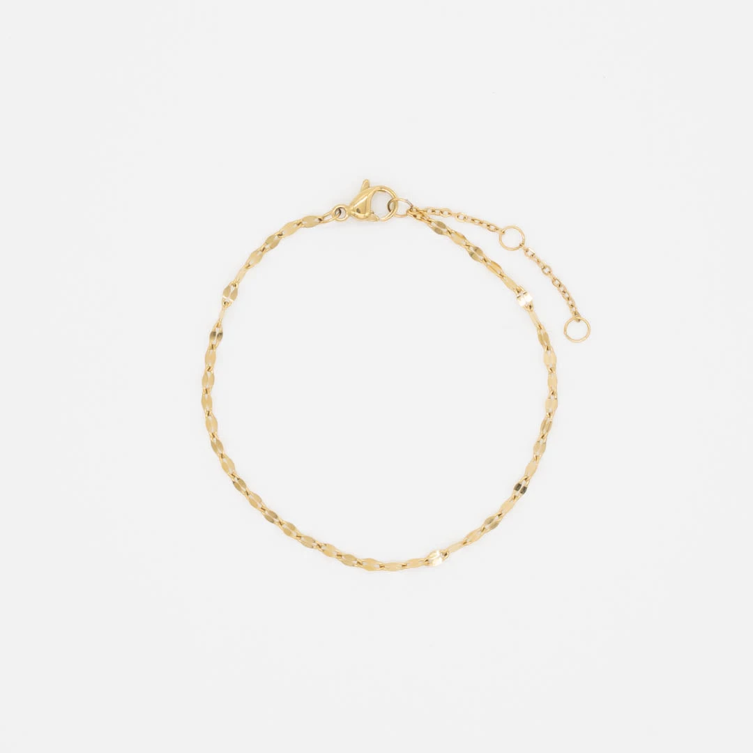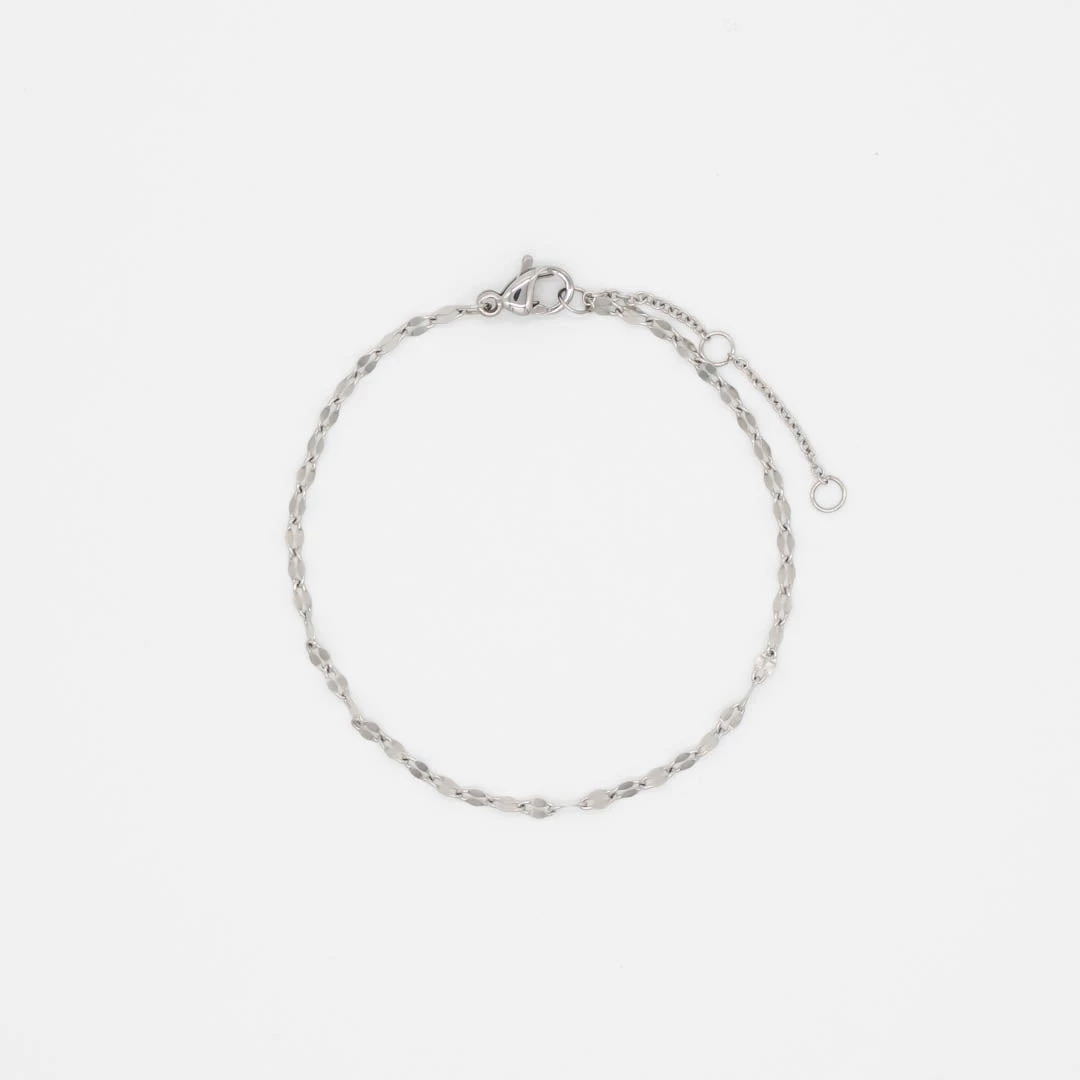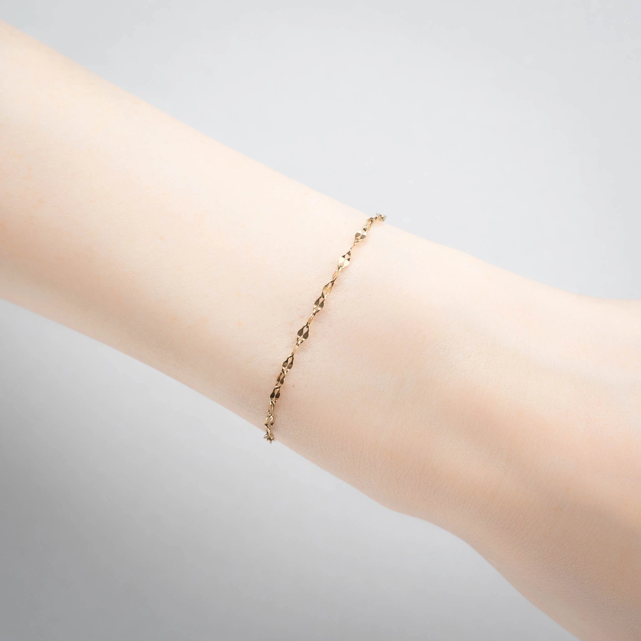 華奢デザインで女性らしい印象のある「サージカルステンレス ペタルチェーンブレスレット」。