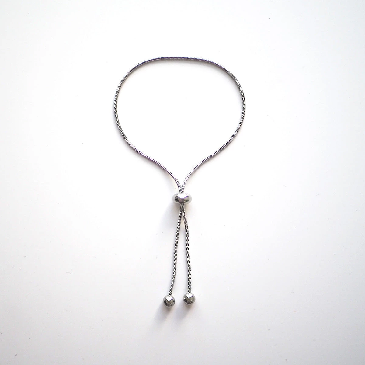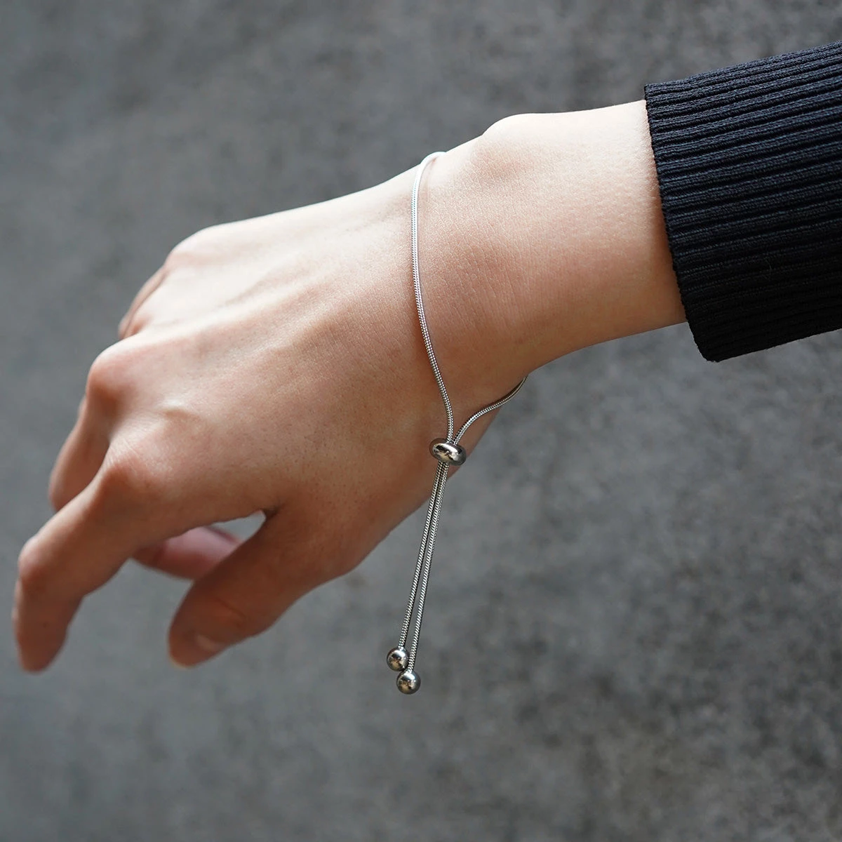 クールなシルバーカラーが美しい「アジャスタースネークブレスレット」。