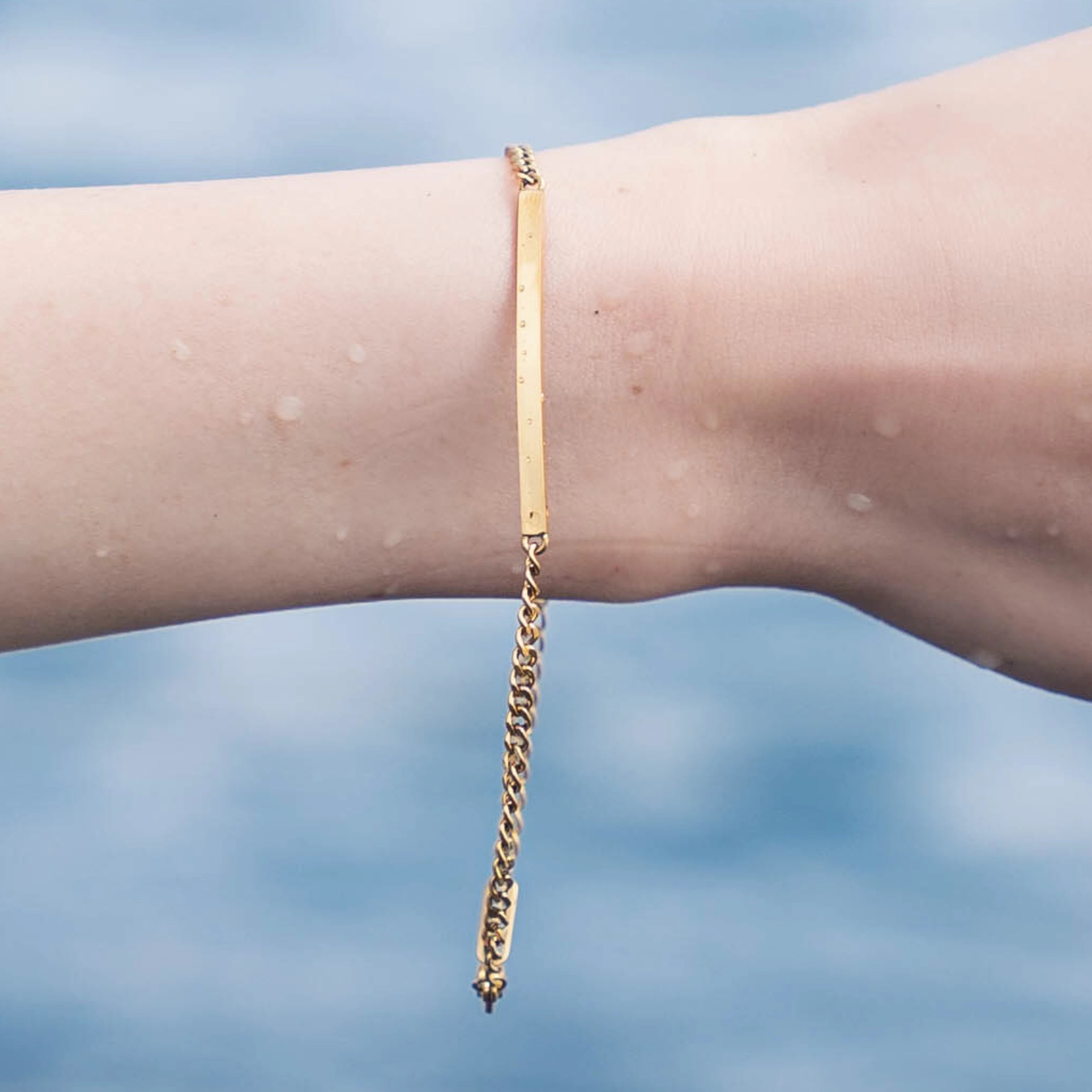 プレートの輝きが女性らしさをプラスしてくれる「ゴールドプレートブレスレット」。