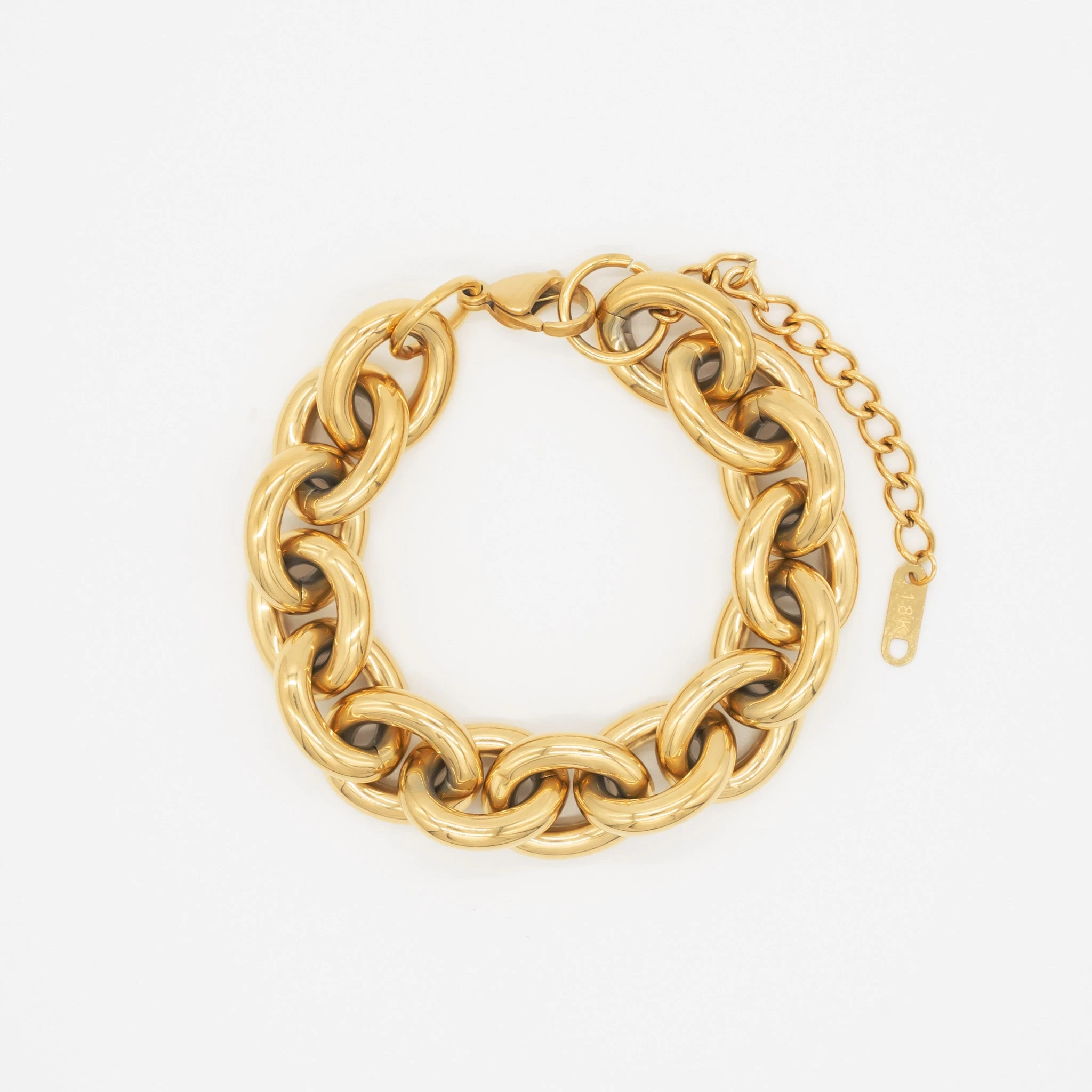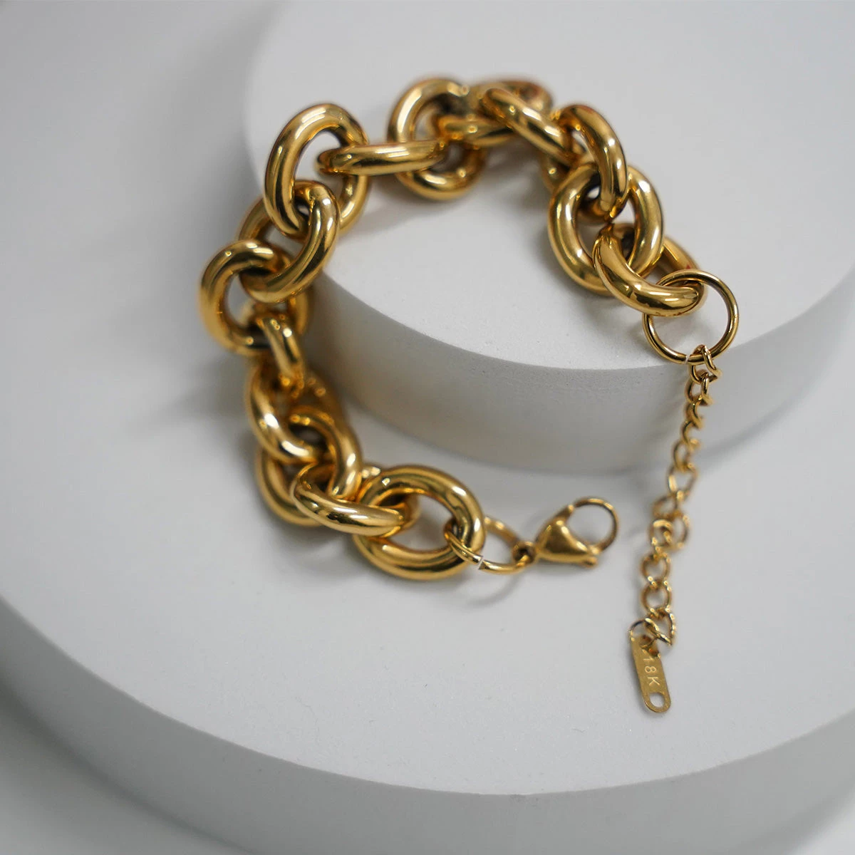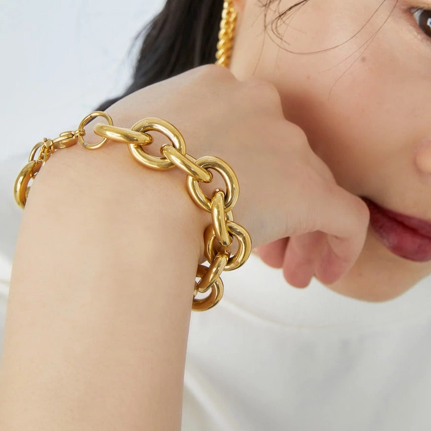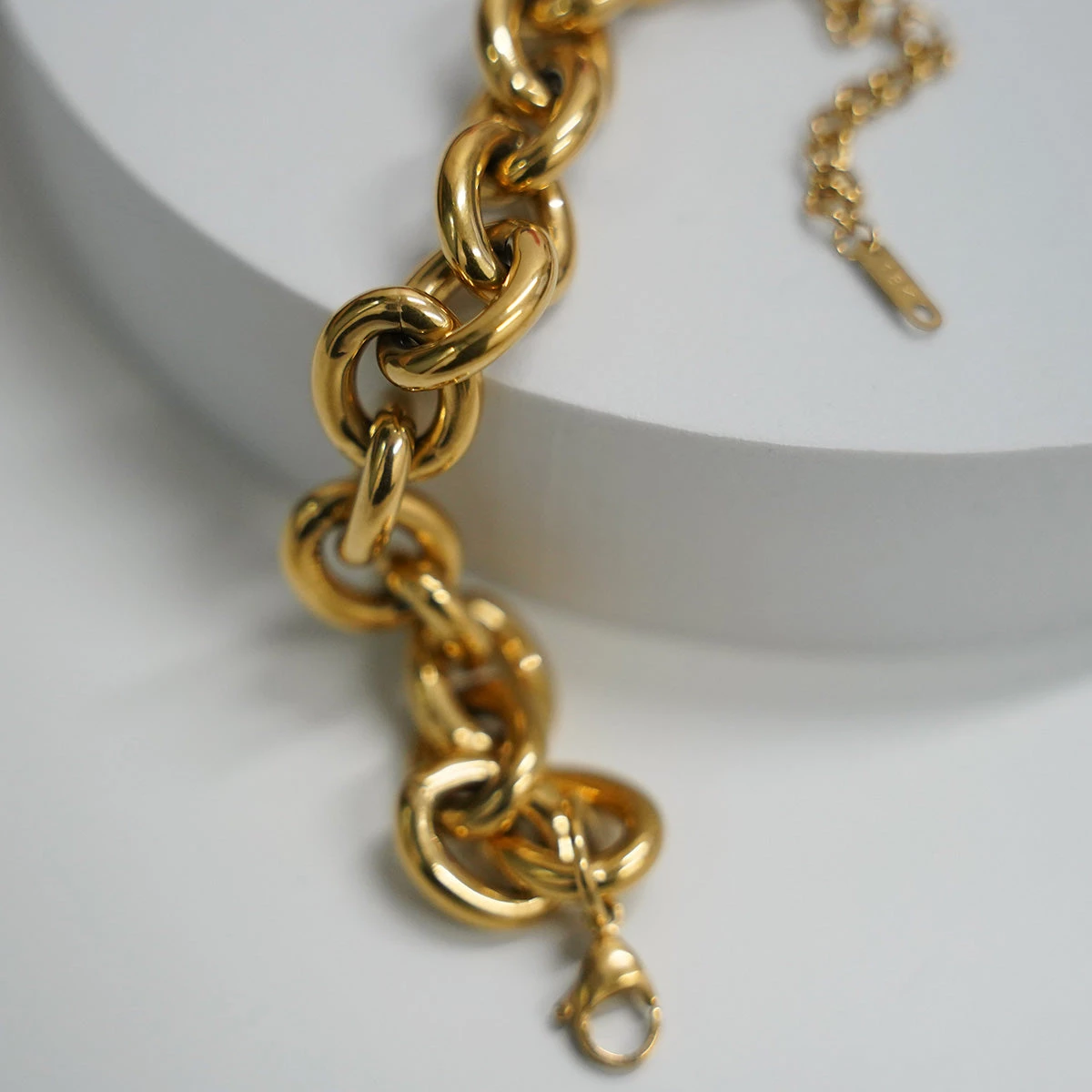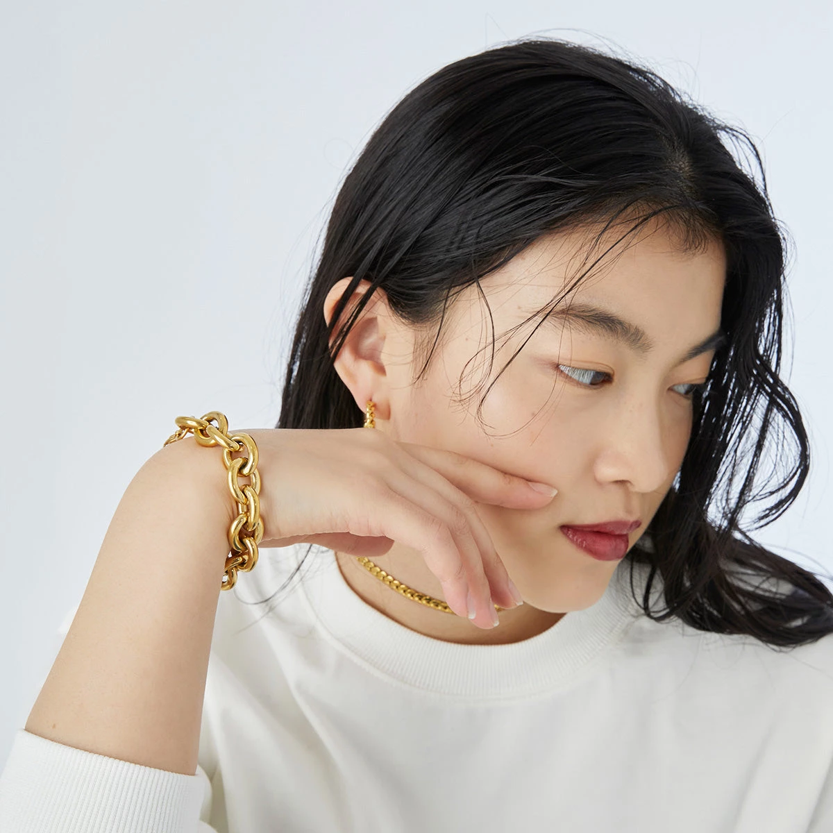 トレンド感たっぷりの「チャンキーチェーンブレスレット」。