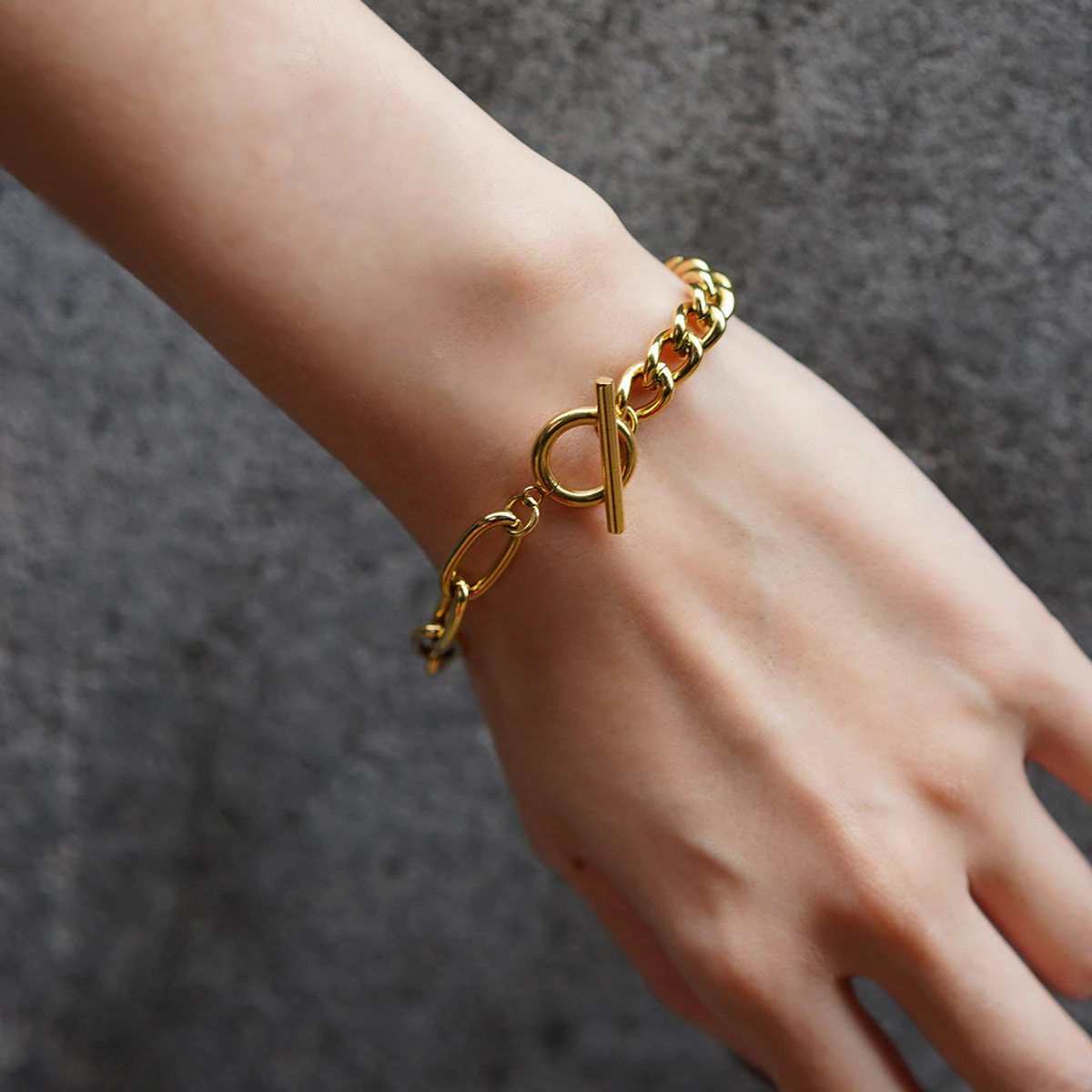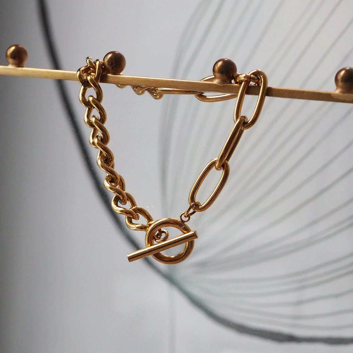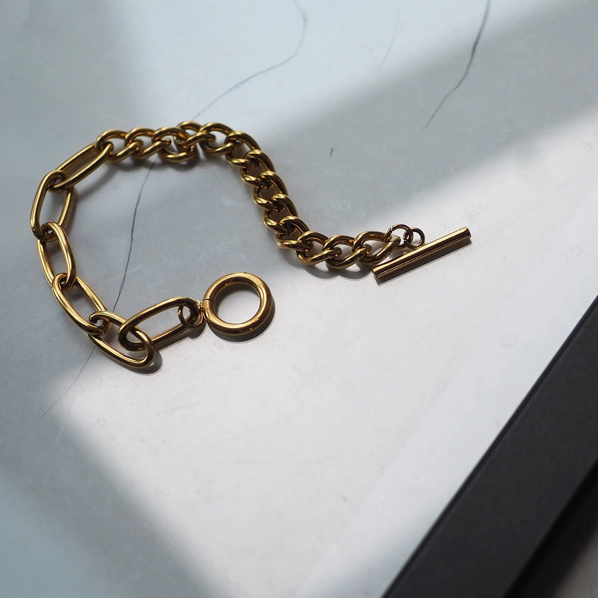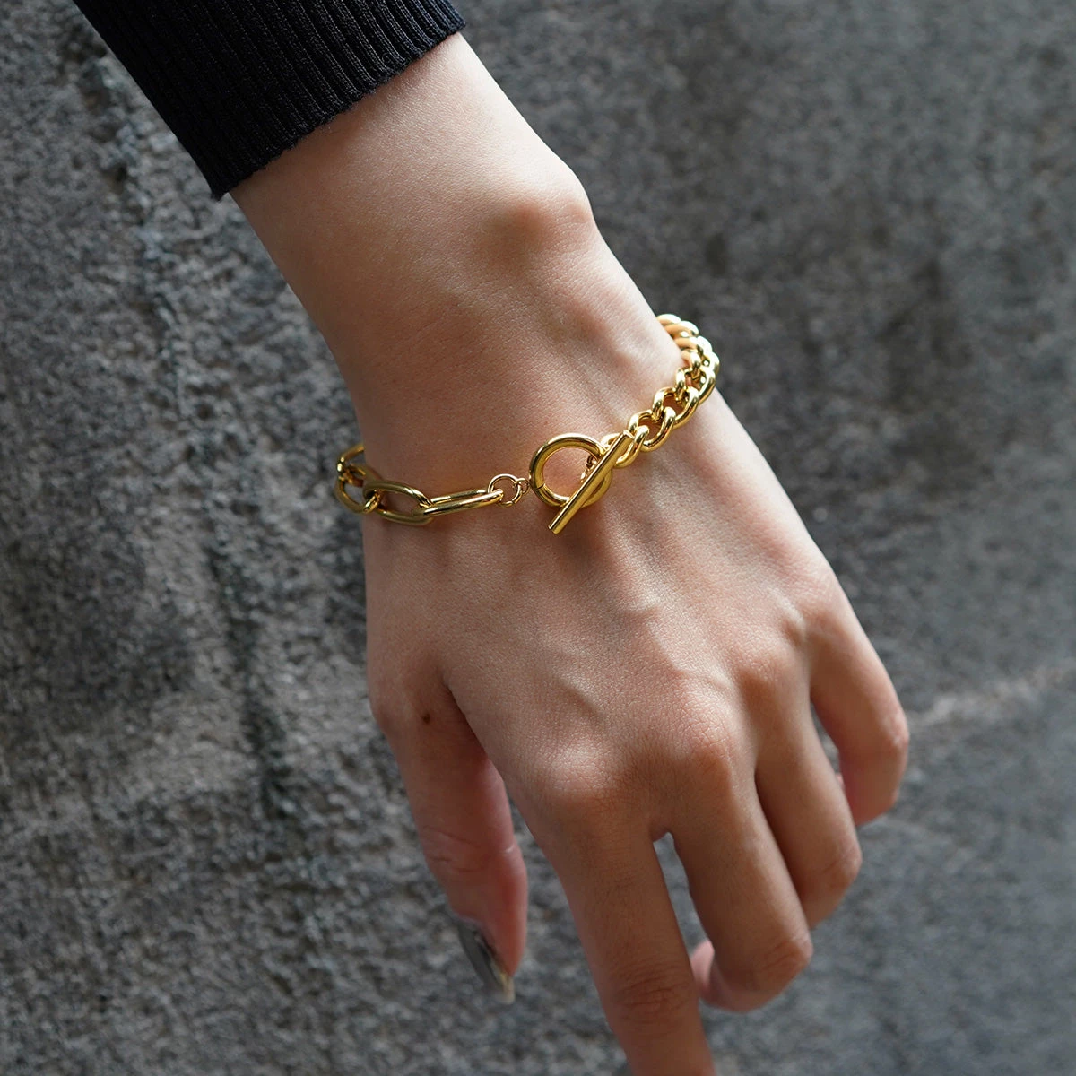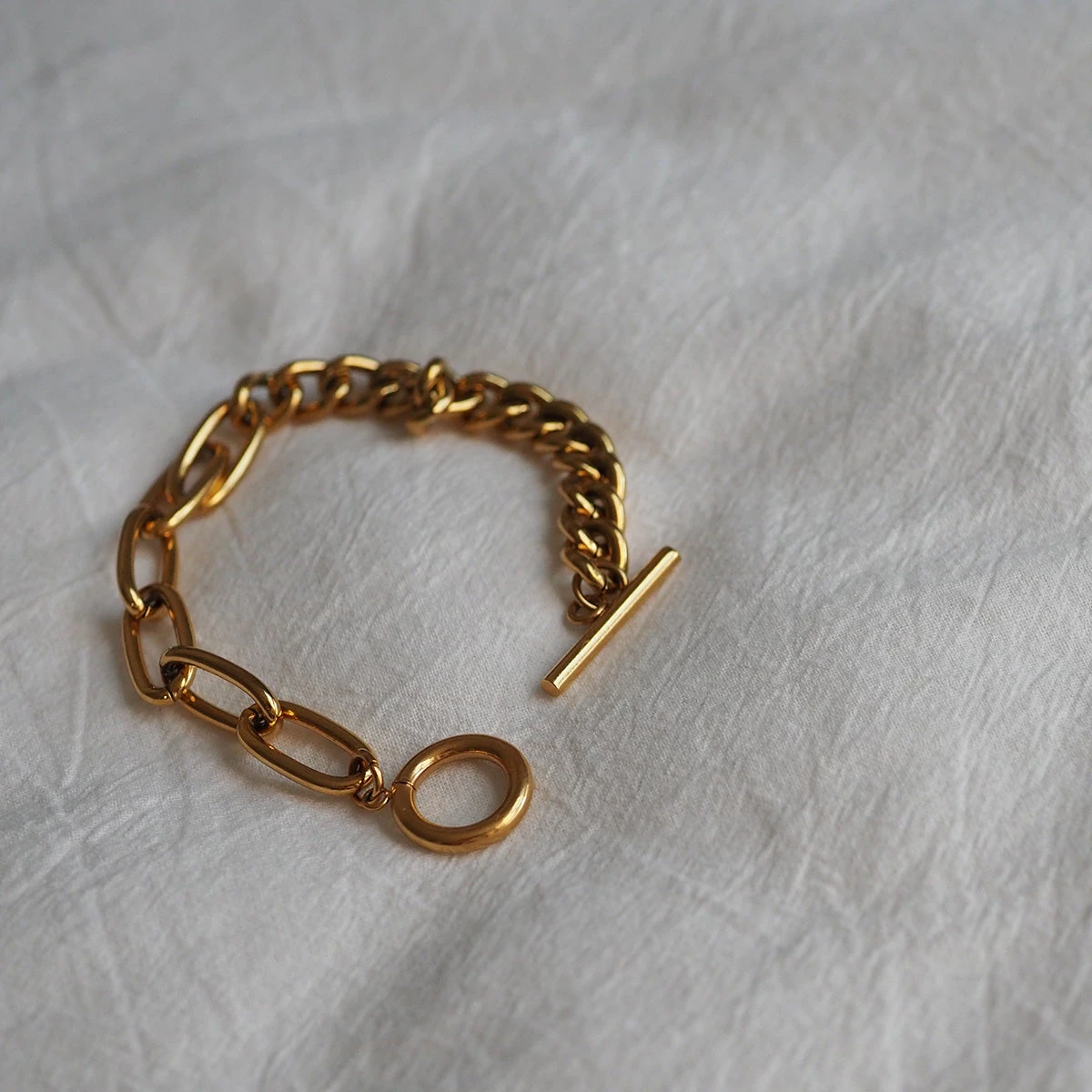 2つの異なるチェーンがユニークな「コンビマンテルチェーンブレスレット」。