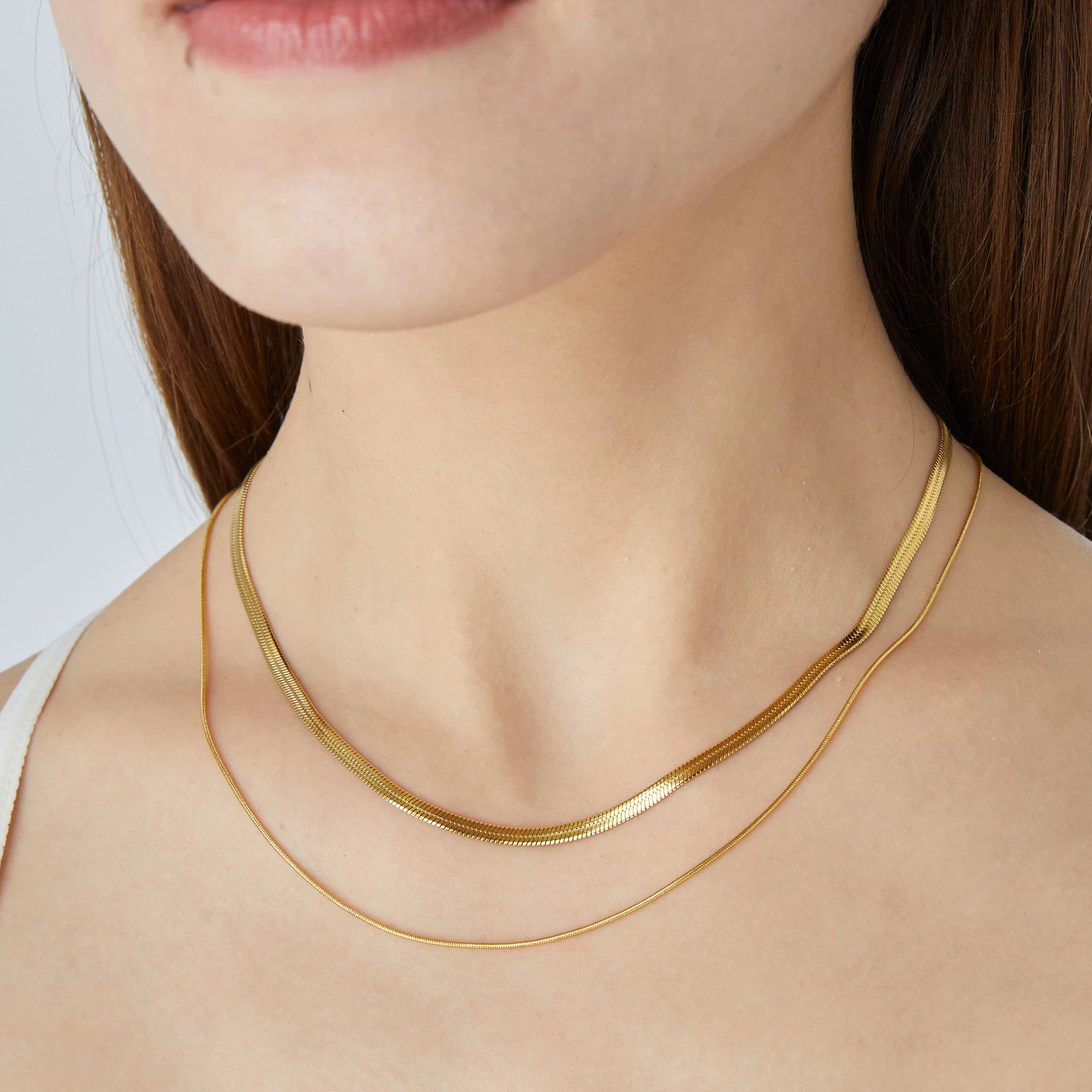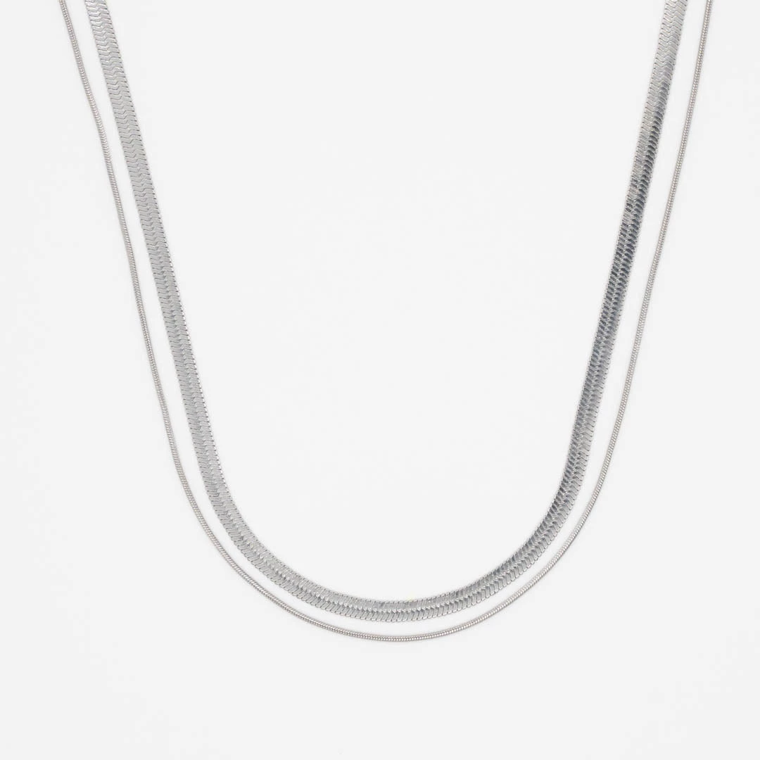 コーディネートにこなれ感をプラスできる「サージカルステンレス ダブルスネークチェーンネックレス」。