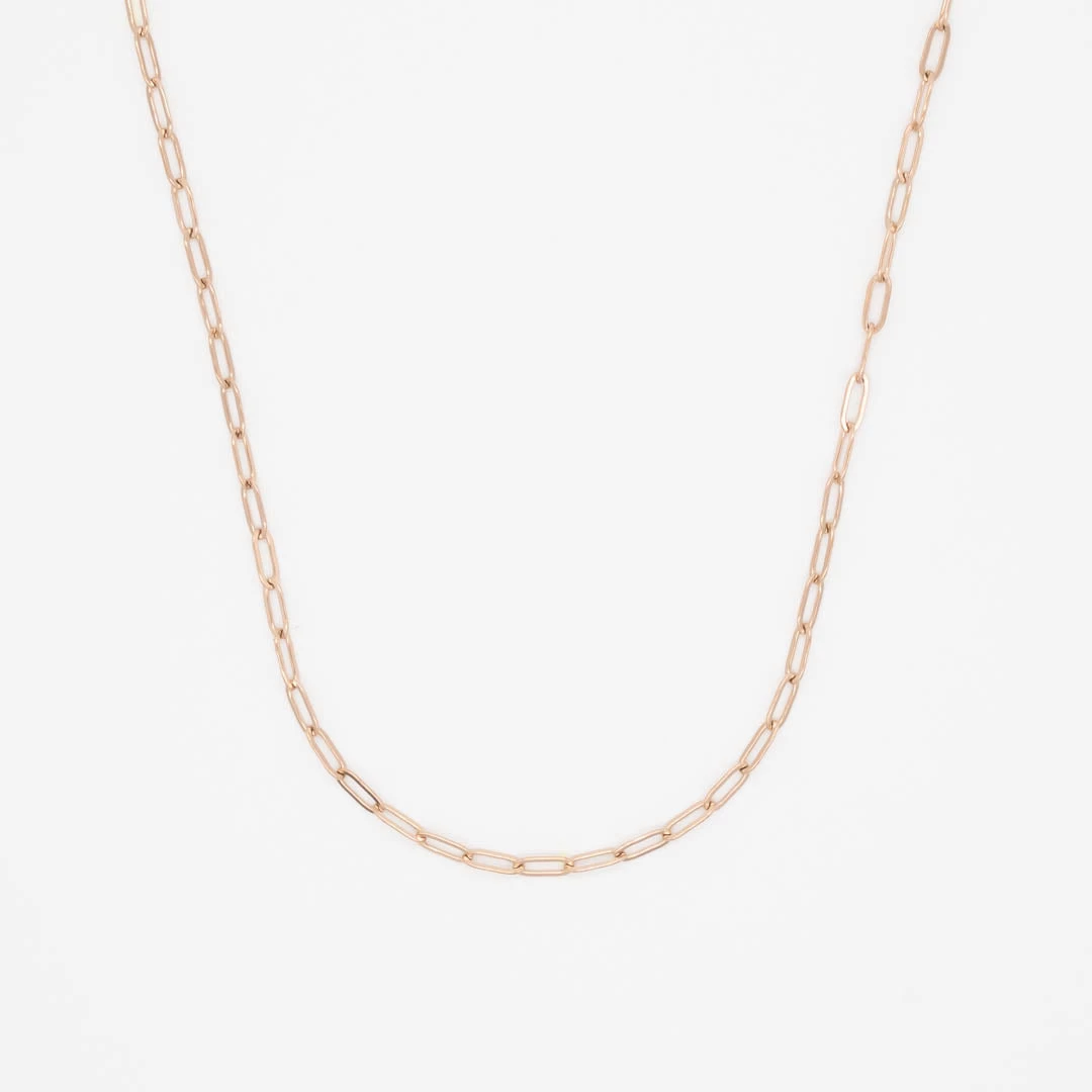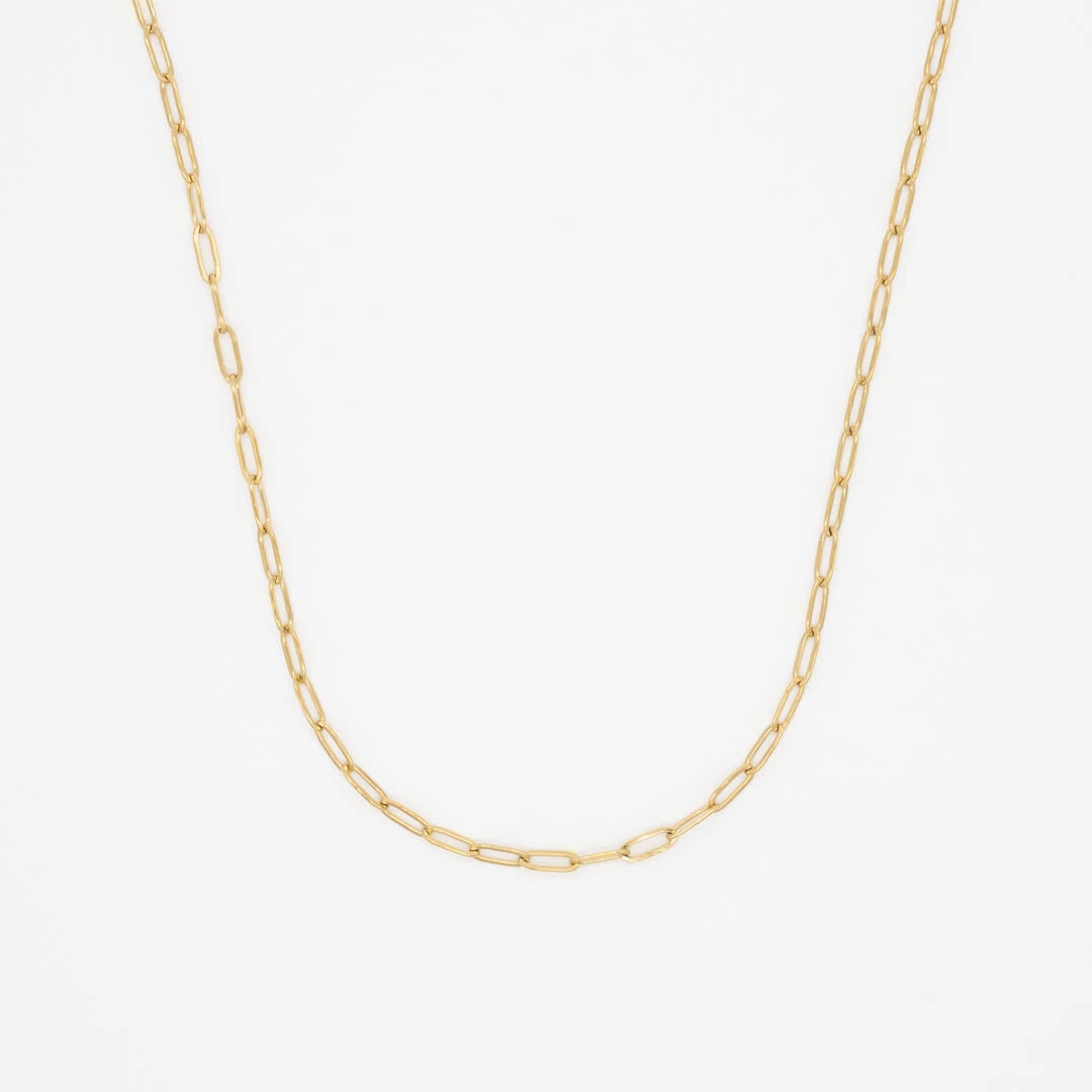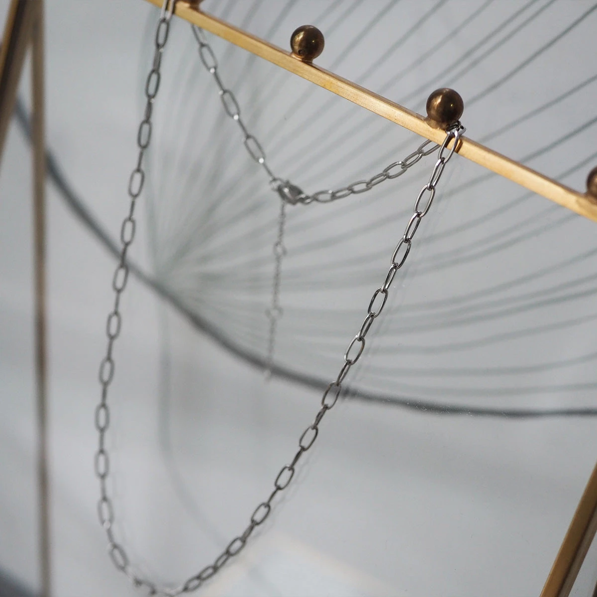 クリーンで女性らしい印象のある「サージカルステンレス フラットオーバルチェーンネックレス」。