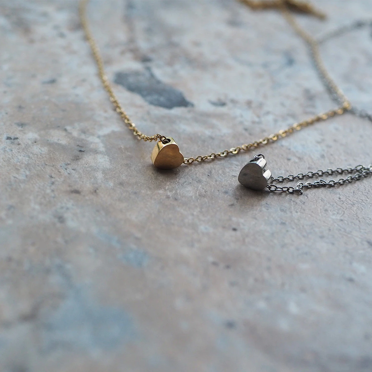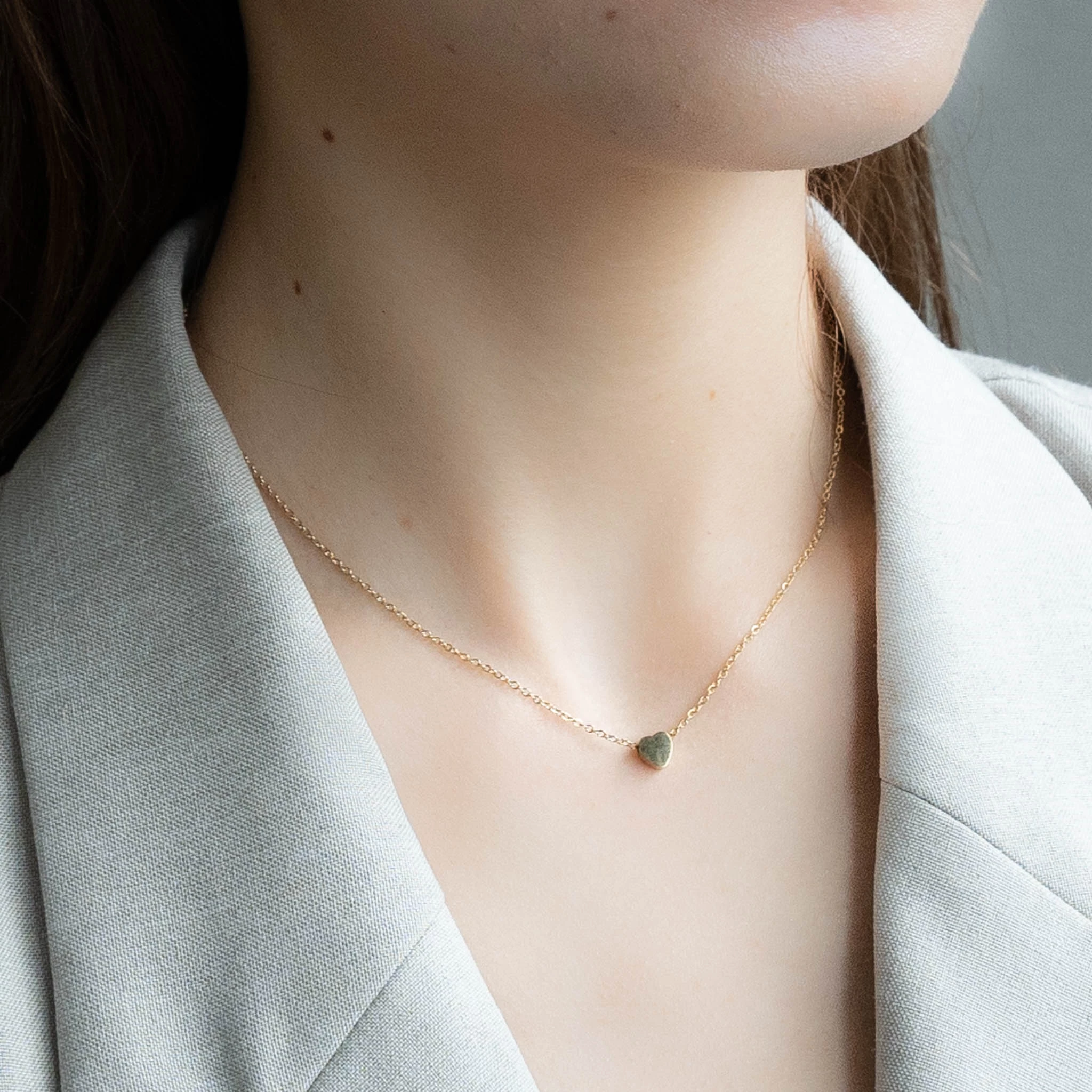 華奢なチェーンにさりげなく輝くハートが可愛らしい「ハートネックレス」。