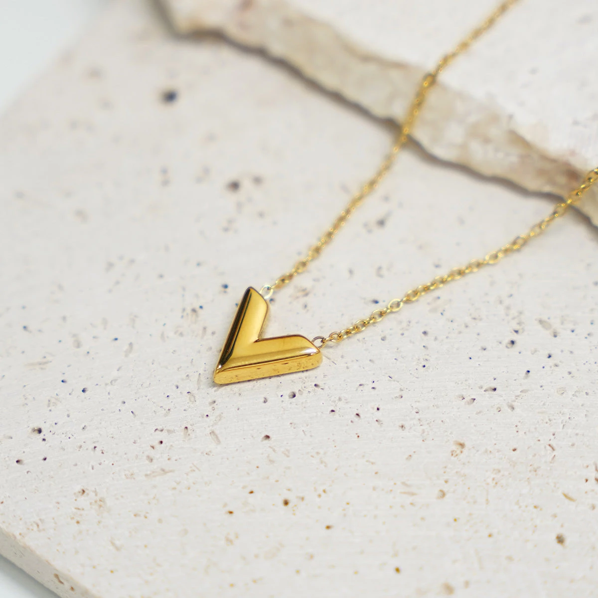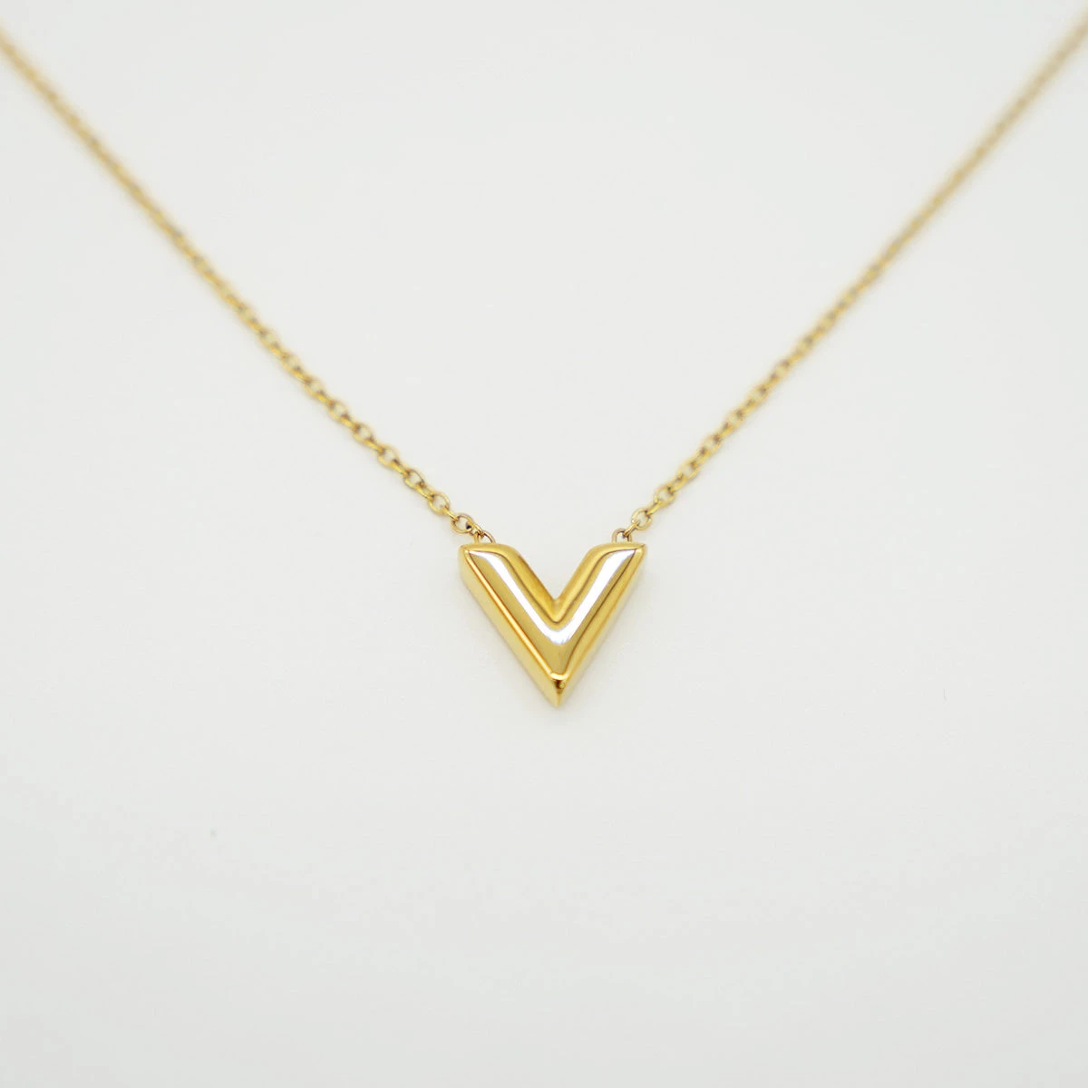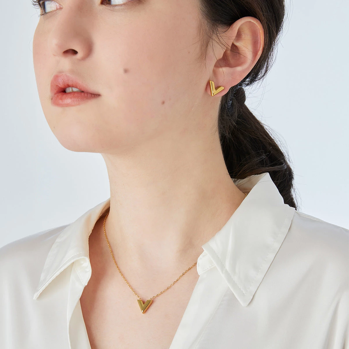V型のチャームが胸元を華やかにする「316L Vデザインネックレス」。