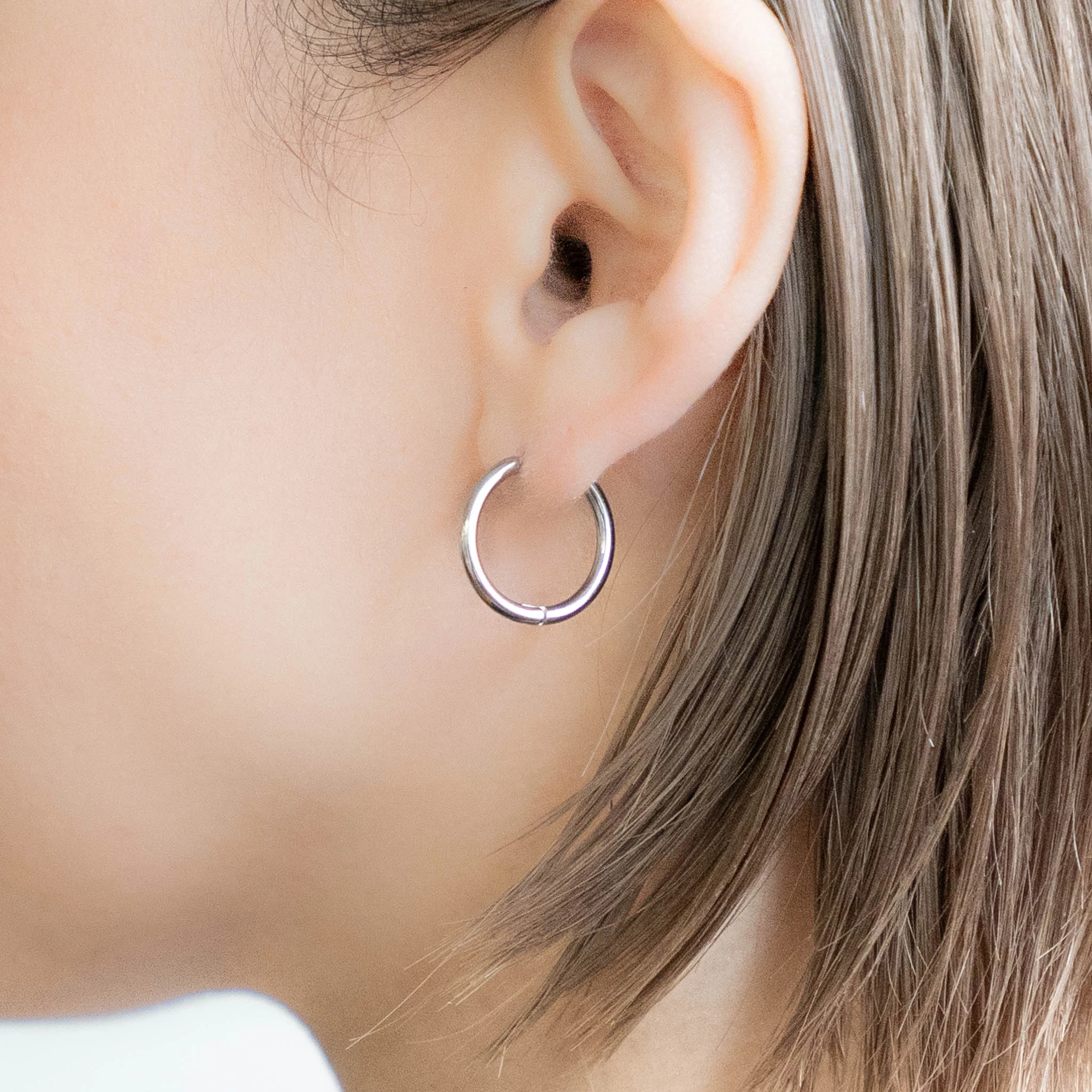 シンプルでタイムレスに使用しやすい「シンプルフープピアス」。