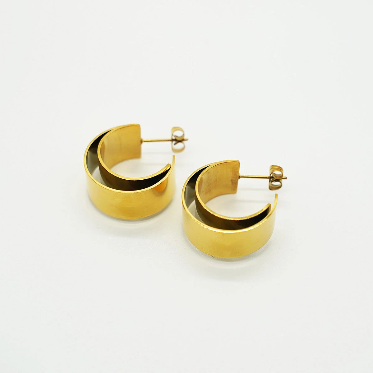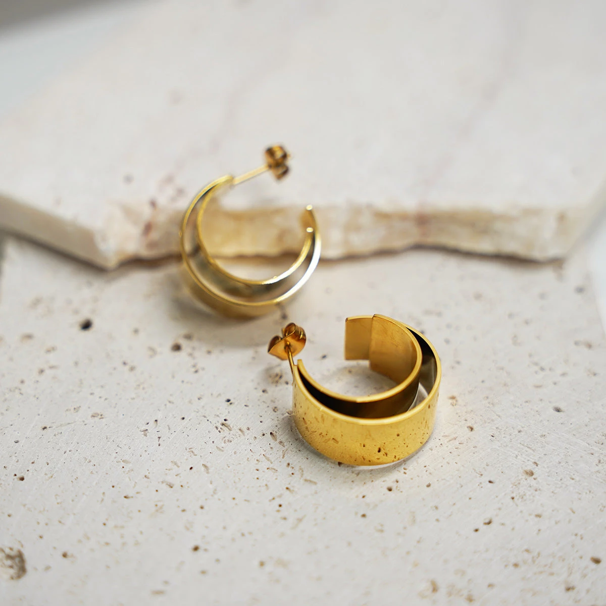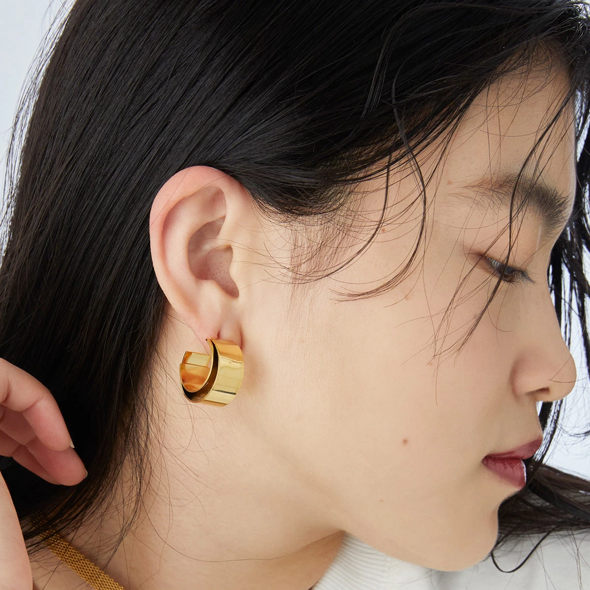 存在感たっぷりに女性らしさも演出する「フラットダブルフープピアス」。