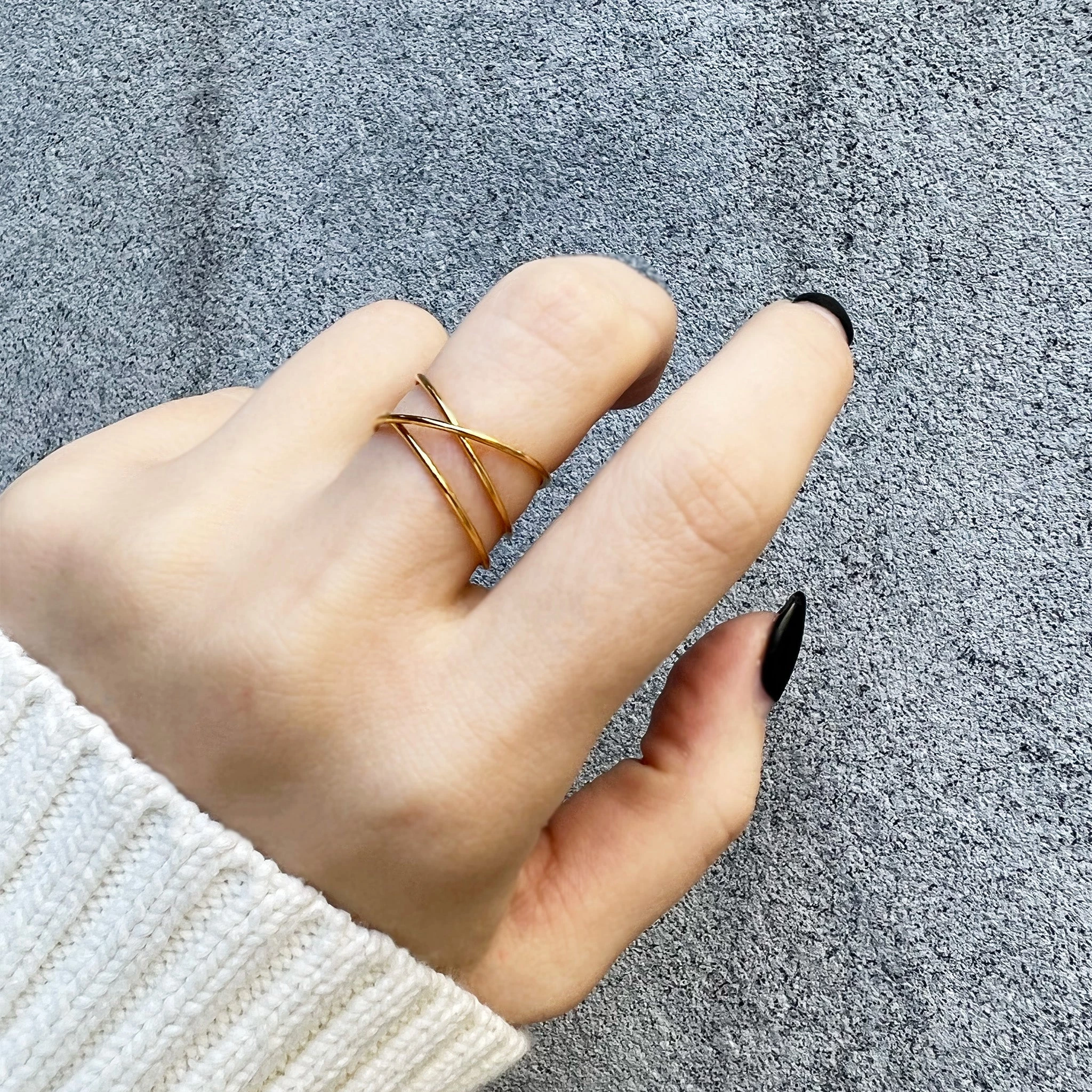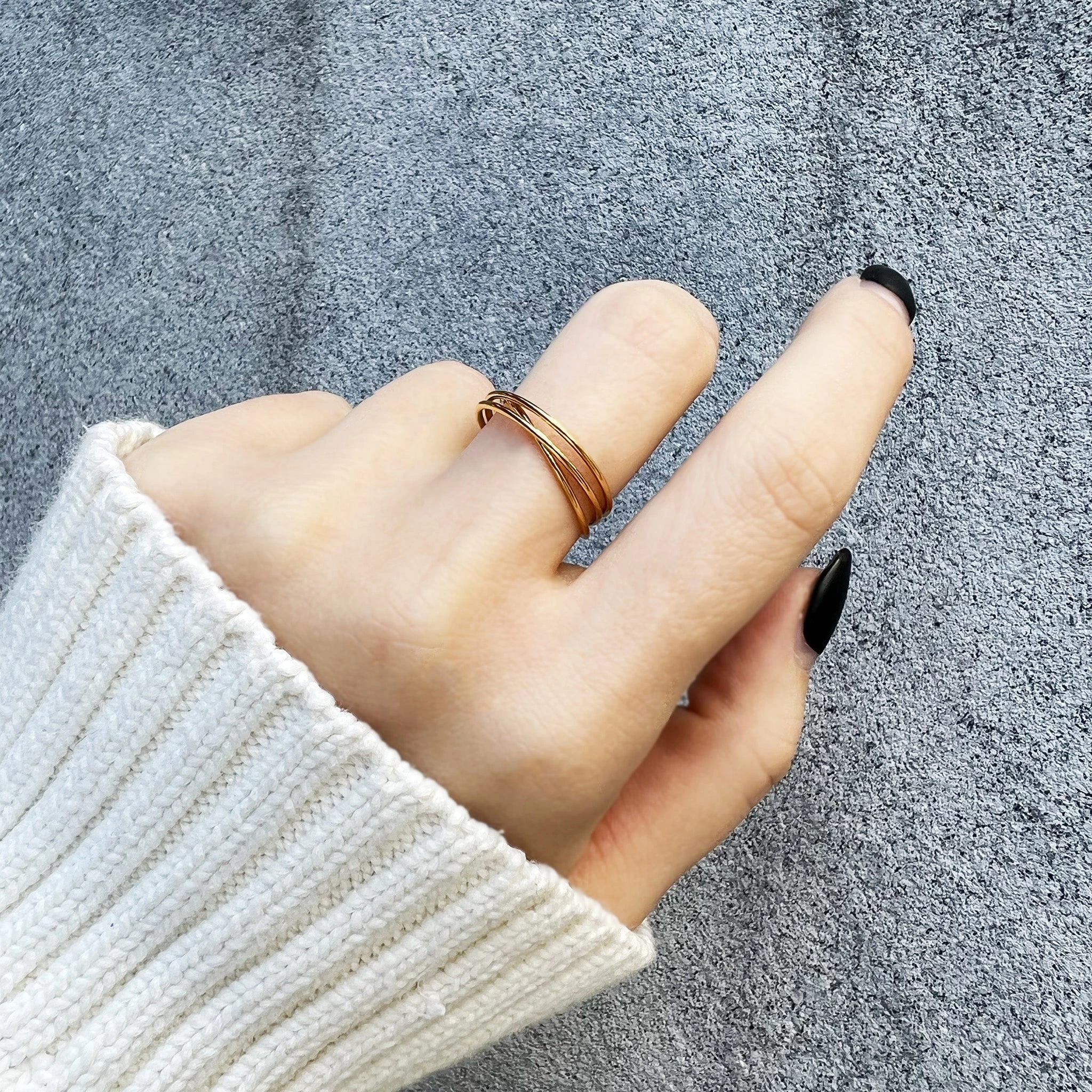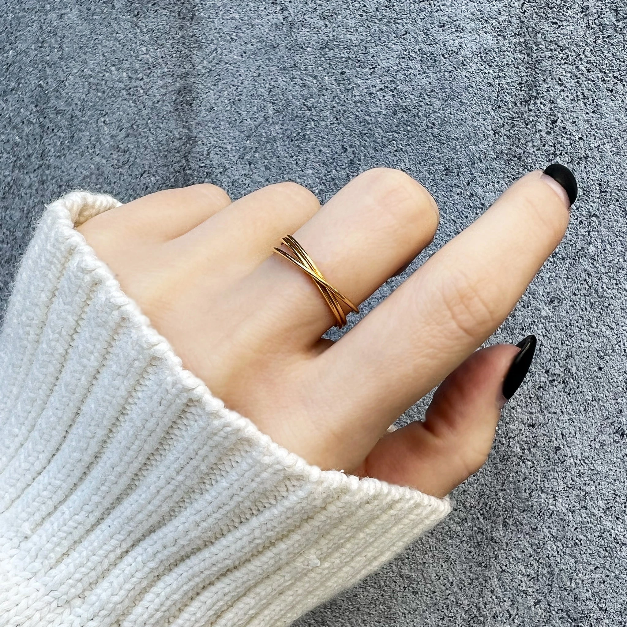 三連のプレーンリングでアクセントをつけた「サージカルステンレス プレーントリプルリング」。