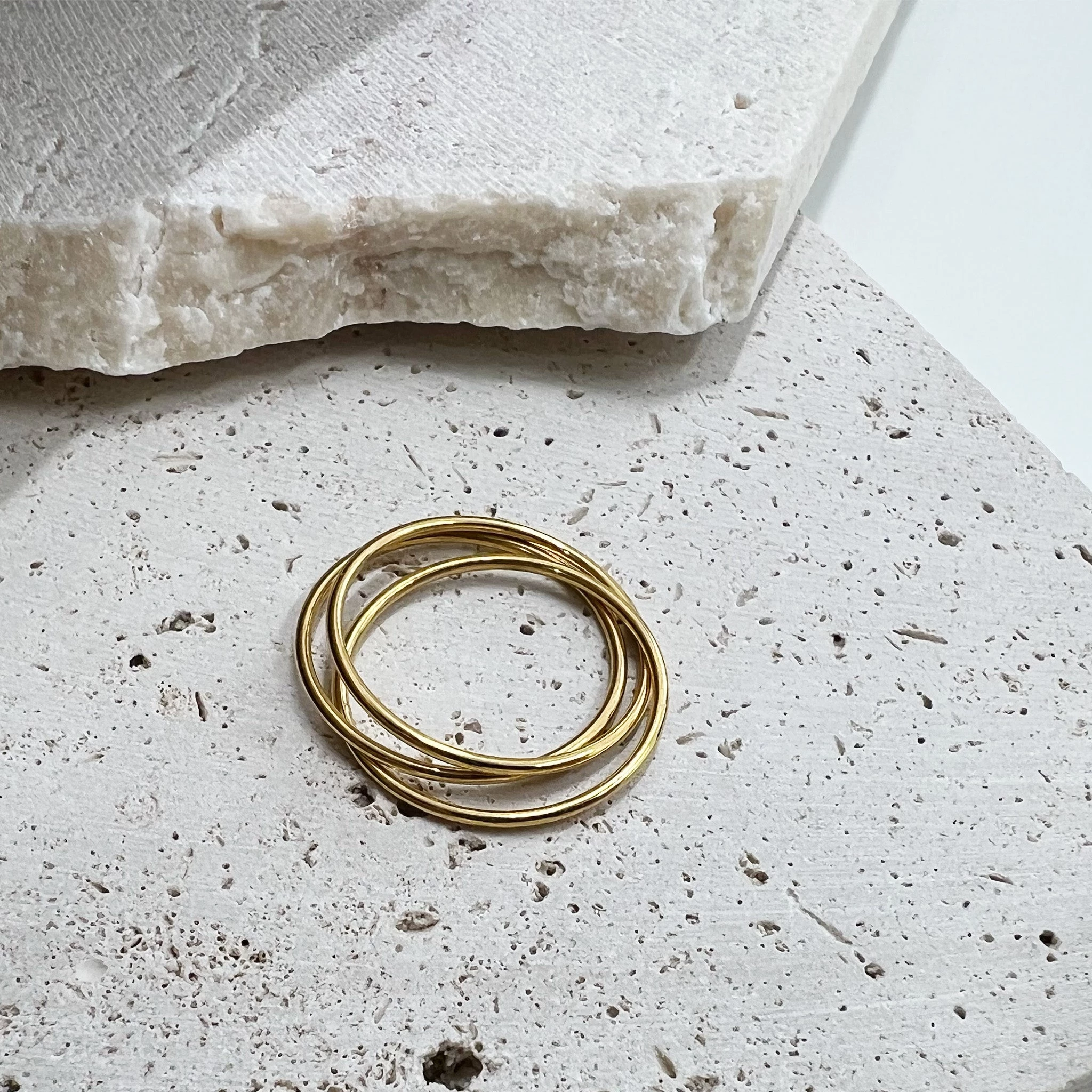 三連のプレーンリングでアクセントをつけた「サージカルステンレス プレーントリプルリング」。