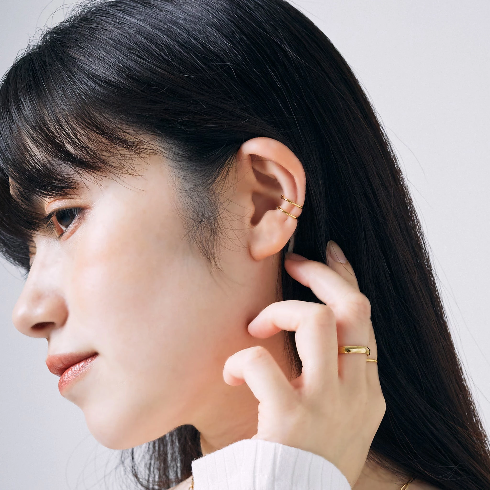 同デザインのイヤーカフとあわせて付ければオシャレ度がぐんとアップします。