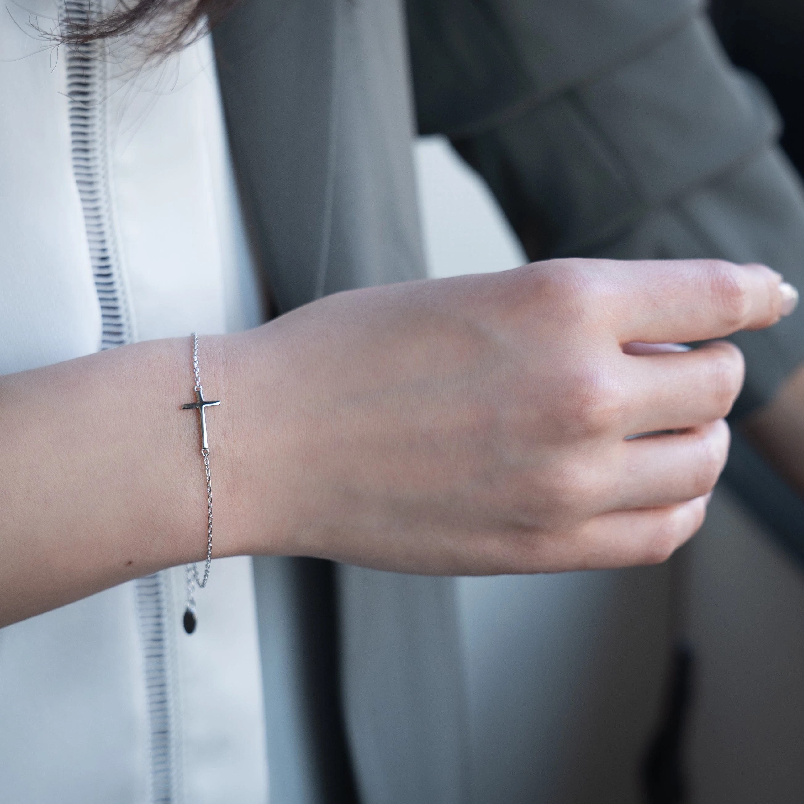 主張し過ぎない上品なシルエットが美しい「シルバー925 クロスチェーンブレスレット」。