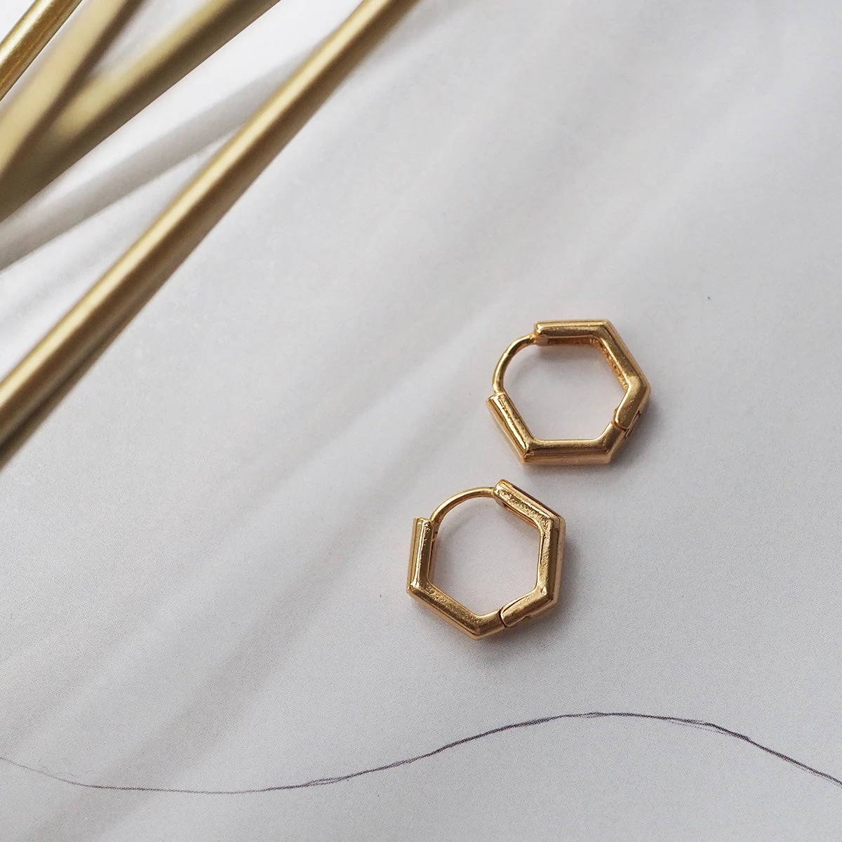 S925 ヘキサゴンフープピアス