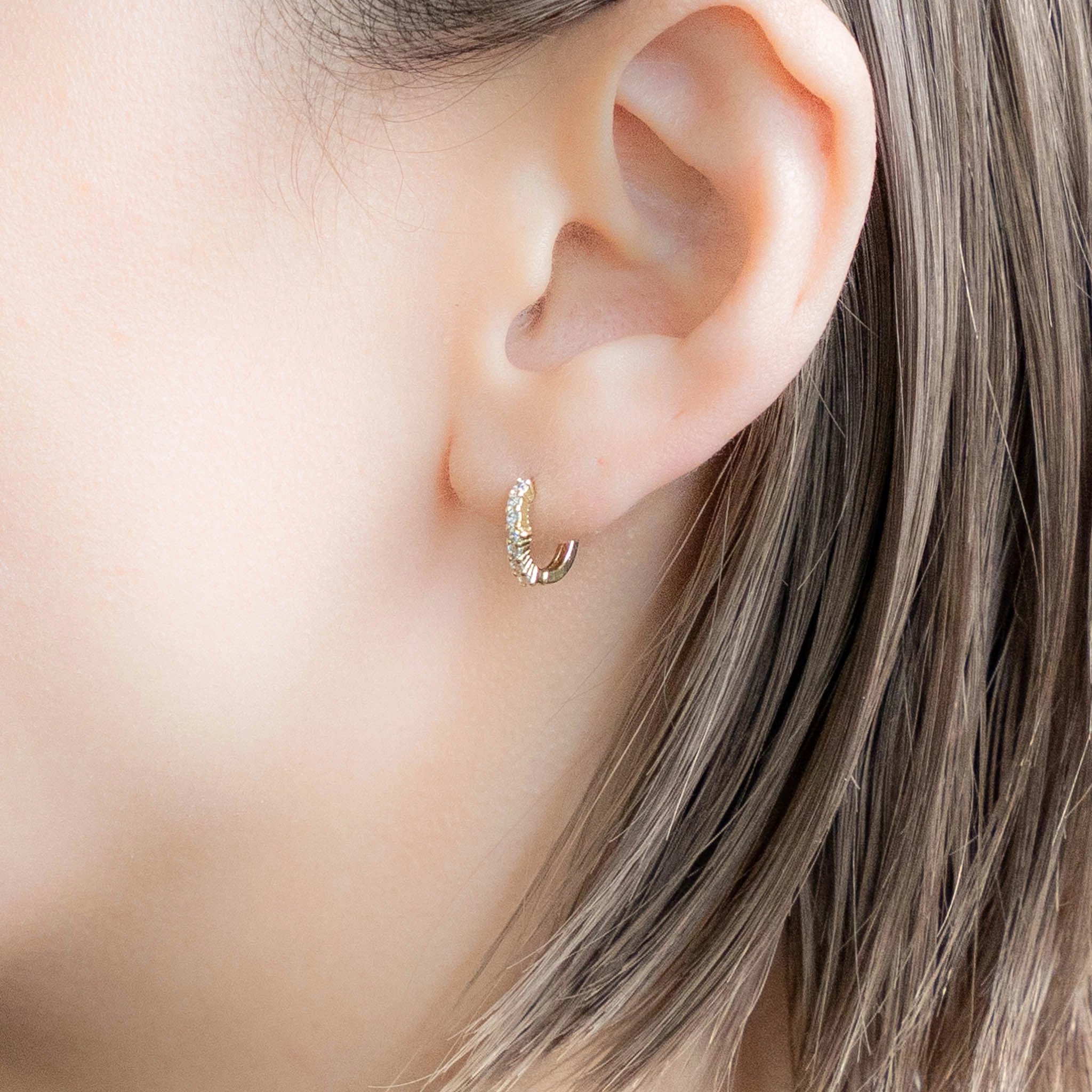 オフィスには「ドットフープピアス」、お出掛けやお呼ばれには「クリアストーンフープピアス」と使い分けていただくのもおすすめです。